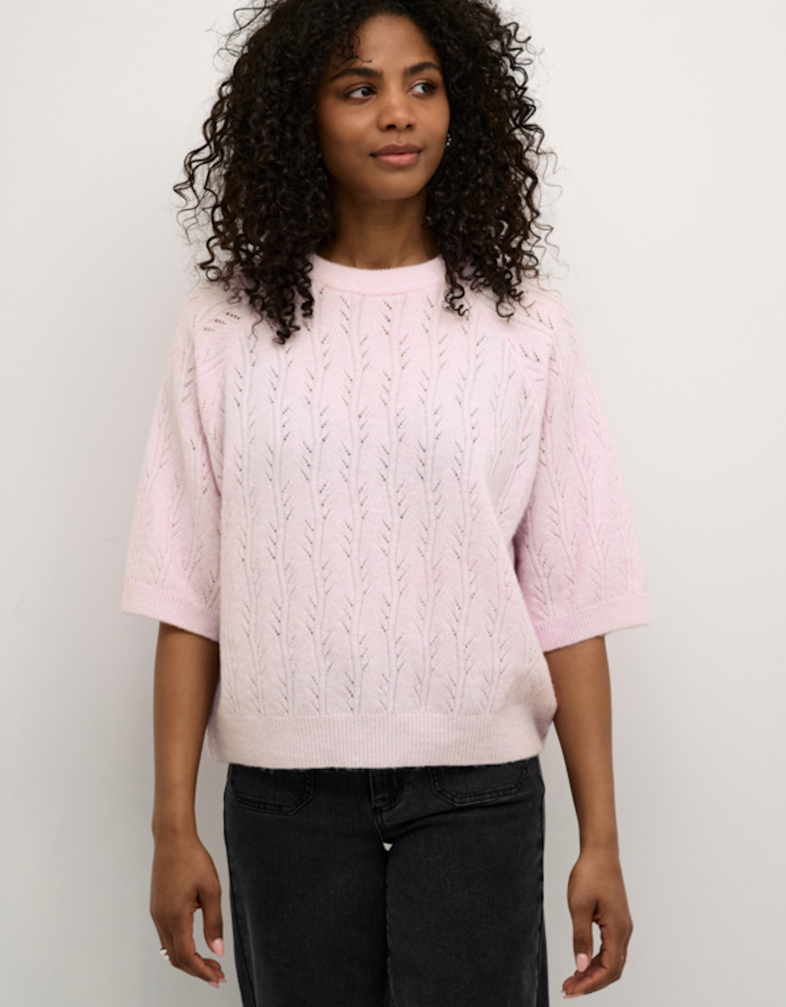 This loose-fitting top is an ideal choice for spring, offering both style and comfort. Elbow-length sleeves give a lightweight feel, perfect for warmer days, while the fabric is soft and lightweight. Delicate details add a touch of elegance.