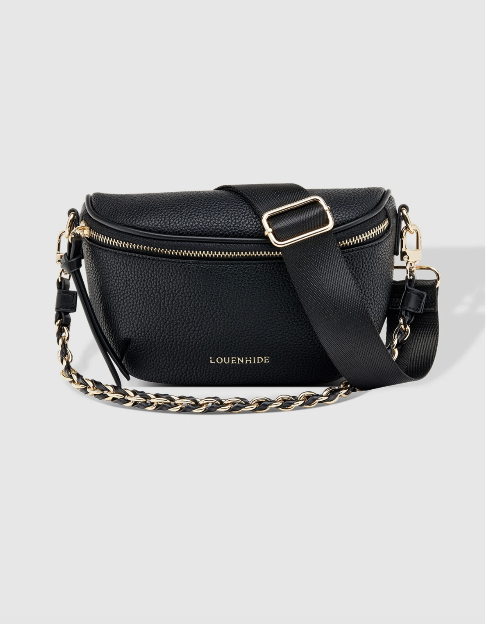 This soft vegan leather crossbody bag is thoughtfully designed with a secure front zip closure, a backside zip pocket, and an internal zip pocket to keep your belongings safe while you're on the move. Perfectly suited for your active lifestyle, it combines style and functionality. Elevate your look with the woven vegan leather chain shoulder strap, or opt for casual comfort with the adjustable webbing strap.